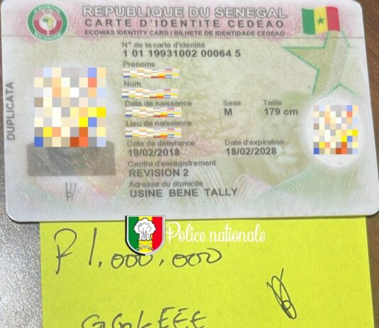 Selon la police nationale, qui a publié l’information sur sa page Facebook, les personnes arrêtées sont impliquées dans divers cas de fraude : l’un aurait usurpé l’identité d’un parent lors d’une audience foraine afin d’obtenir illégalement une identité sénégalaise ; trois autres ont monté un dossier fictif pour obtenir une carte d’identité nationale au nom de leur fils ; enfin, un commerçant de Thiaroye a été surpris en possession de faux documents, notamment une copie de CNI et un certificat de nationalité sénégalaise.
