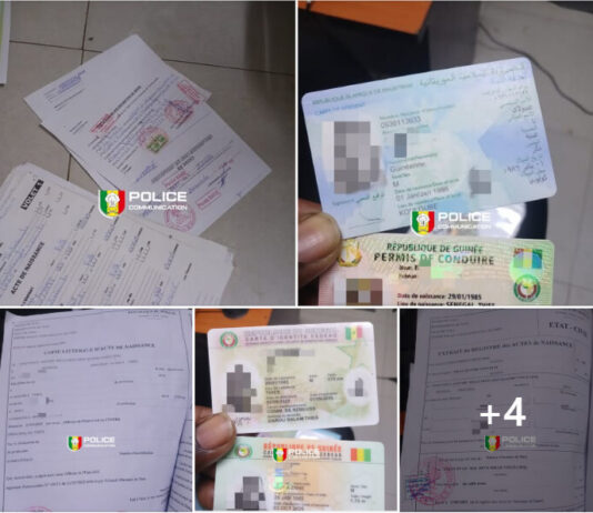 La fouille de ses bagages a révélé un important stock de documents falsifiés provenant de plusieurs localités, incluant des pièces d’identité guinéennes et mauritaniennes.