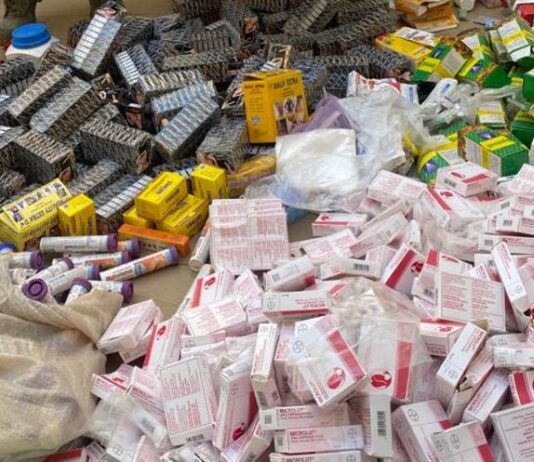 La perquisition a abouti à la saisie d’un stock conséquent de médicaments, dont certains périmés : sirop bobaraba expiré, indométhacine, chlorphénamine, dexaméthasone, CA-1000, comprimés de mixagrip, puregrey-100, KGN primietine, multivitamines, aphrodisiaques « reality extra », paracétamol, co-trimoxazole, efferalgan, entre autres.
